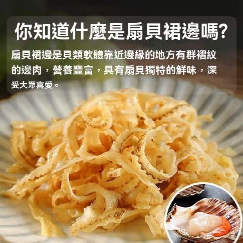 淡乾扇貝裙邊 海味臻品 深海淡幹扇貝裙邊 自然晾曬鎖住鮮甜 飽滿厚實 泡發率高 燉湯炒菜皆宜 營養又美味