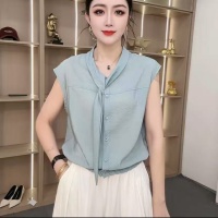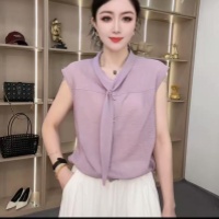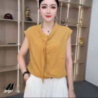 2025新款韓系簡約V領設計感飄帶純色小衫 氣質襯衫 獨特造型顯氣質 純色百搭