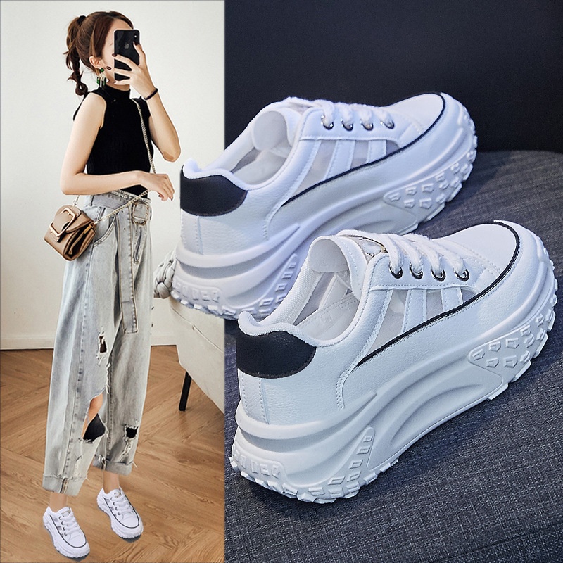 小個子逆襲神器 時尚厚底鏤空網紗鞋 5cm增高秒變大長腿 鏤空網紗輕盈透氣 百搭風格 輕鬆拿捏夏日穿搭