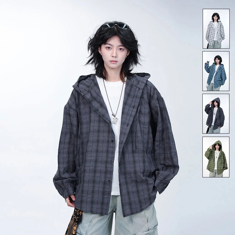 美式復古連帽格紋防曬衣 寬松版型 男女同款 輕松應對戶外出行 夏日防曬時尚必備