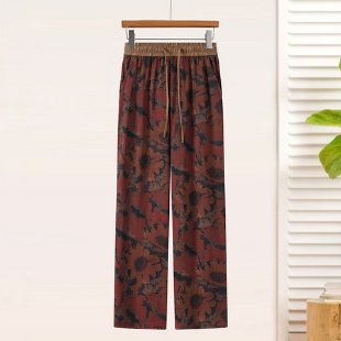 百搭顯瘦女士寬鬆直筒褲 精美印花 氣質優雅 時尚休閒
