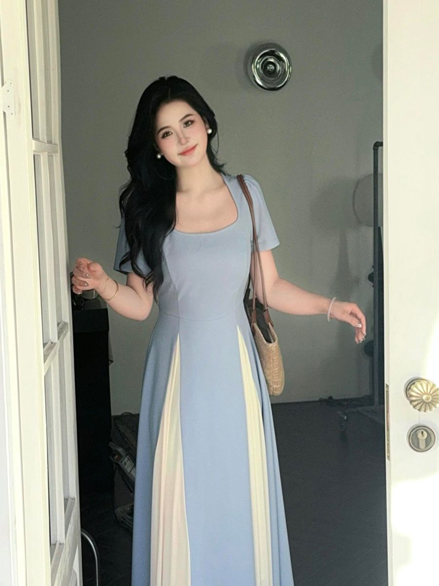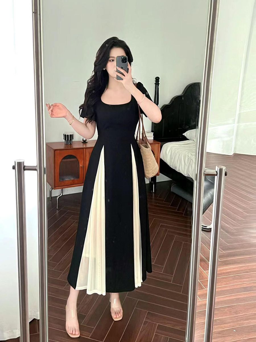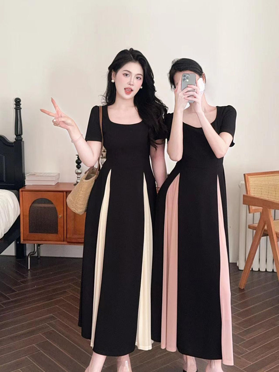 【法式拼接撞色連衣裙】胖mm也能穿出曲線身材~拼接設計洋氣十足,20-65皆可穿~