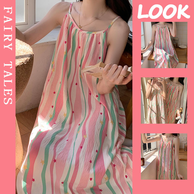 新款精梳棉吊帶睡裙,法式自帶胸墊睡裙,透氣又舒適,防走光遮副乳,居家外穿兩相宜!多款可選,版型寬鬆,不挑身材,美觀與舒適並存【小仙女夏日必備款】