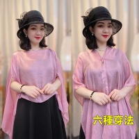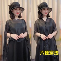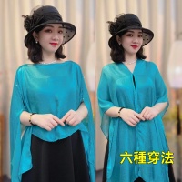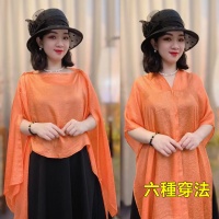 【可可圍巾】六種穿搭風格!夏季高級感爆款時尚,百搭防曬套頭絲巾,披肩純色披肩,外搭時尚百搭套頭披肩絲巾,觀光度假戶外必備