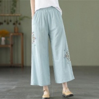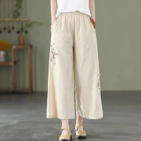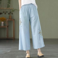 日式純棉麻復古闊腿刺繡褲 25新款夏季棉麻休閒褲 復古民族風刺繡 百搭修身九分褲 多色可選 大碼可穿