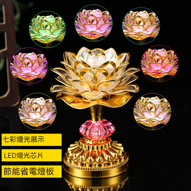 【自動變色七彩蓮花燈】自帶佛音 供奉燈 蓮花燈 家用插電供燈 電池佛供燈