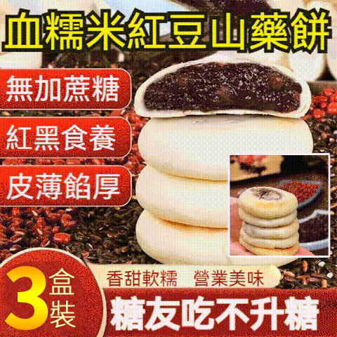 【20萬+網友推篇*國民點心*!高血糖、孕期、减脂期都能吃,老师傅純手作,低脂糖,高鲍腹不升糖,老人孩子都爱吃!】血糯米紅豆山藥餅,無添蔗糖,早餐零食,益氣補血,飽腹代餐! 售後無憂!