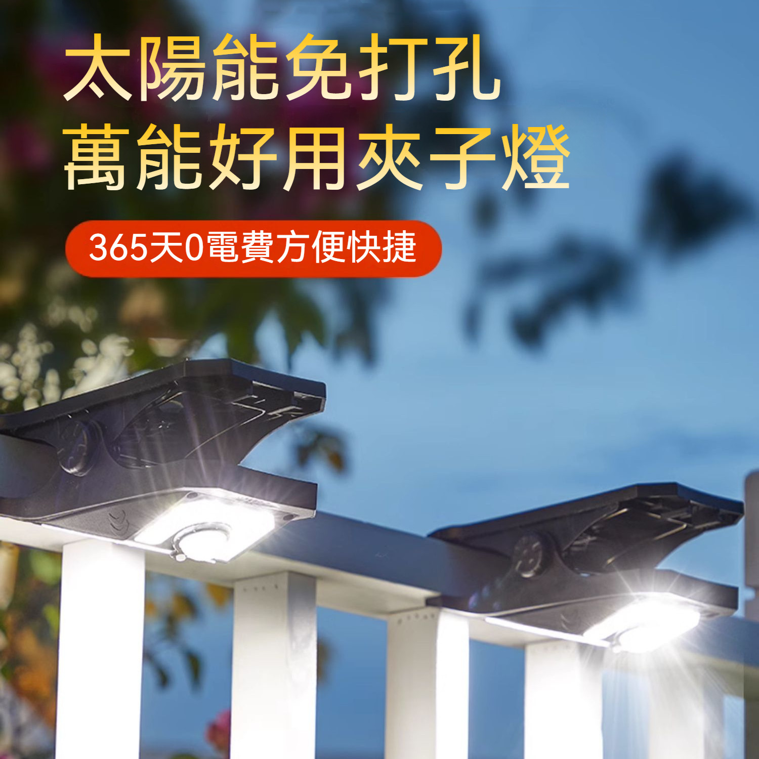 太陽能夾子燈,爆亮聚光,兩種充電模式,全範圍防水,可掛戶外 下雨無懼