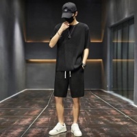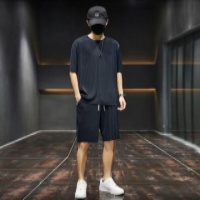 2025年新款夏季冰絲男士套裝,薄款寬鬆休閒百搭短袖T恤,舒適/透氣/速幹