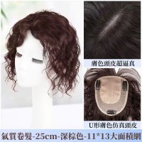 瑞士網全真髮手織捲髮片女士頭頂補髮加髮量蓋白髮蓬鬆自然假髮片