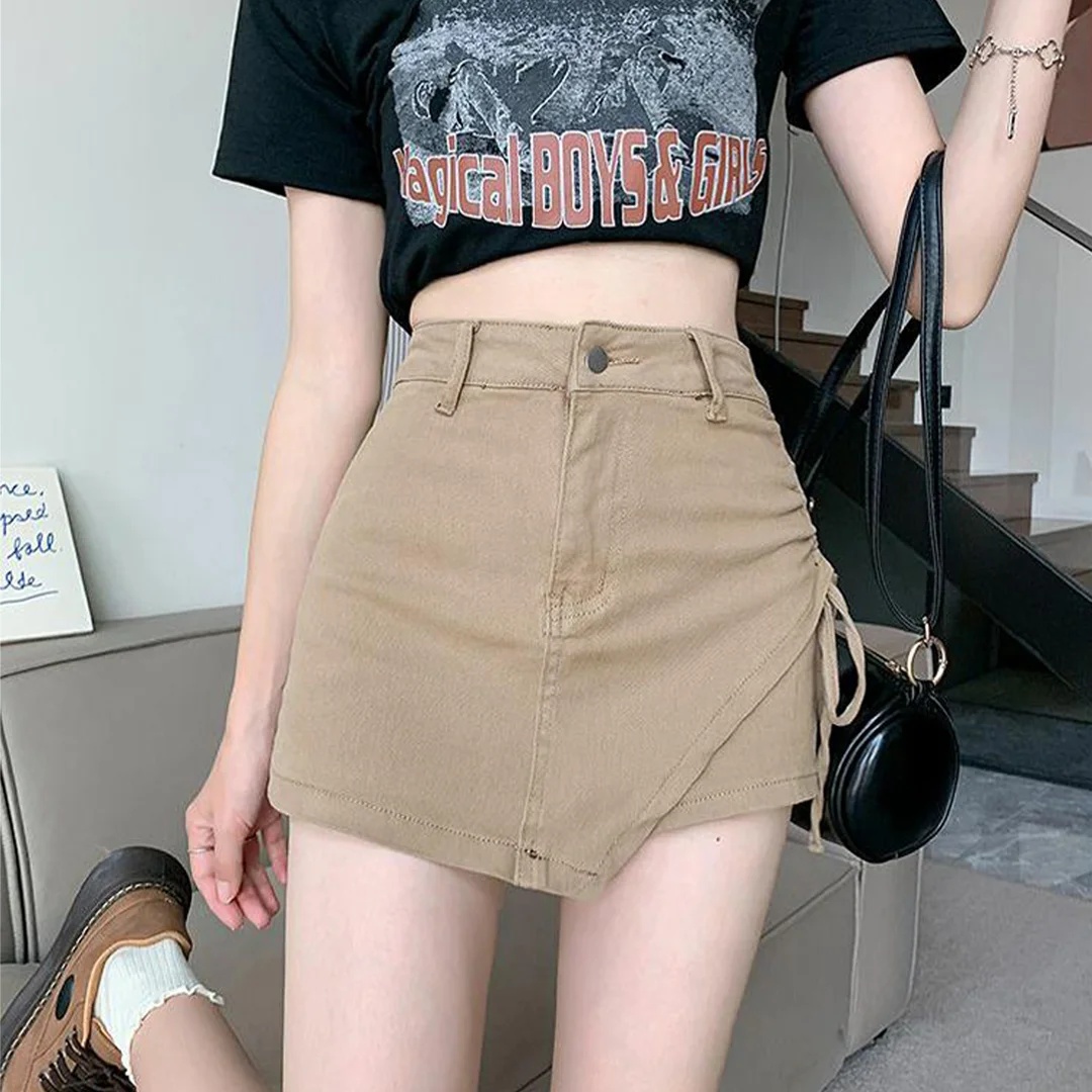 夏日韓版純色牛仔短裙,高腰顯瘦設計,小眾不規則剪裁