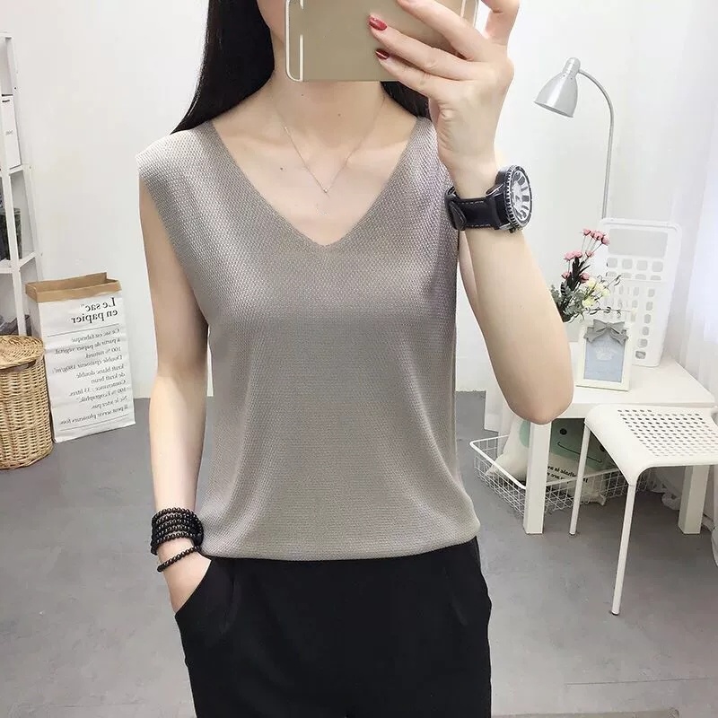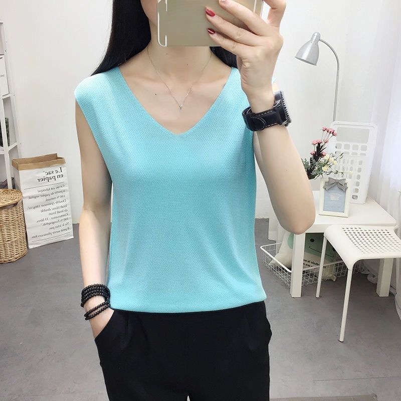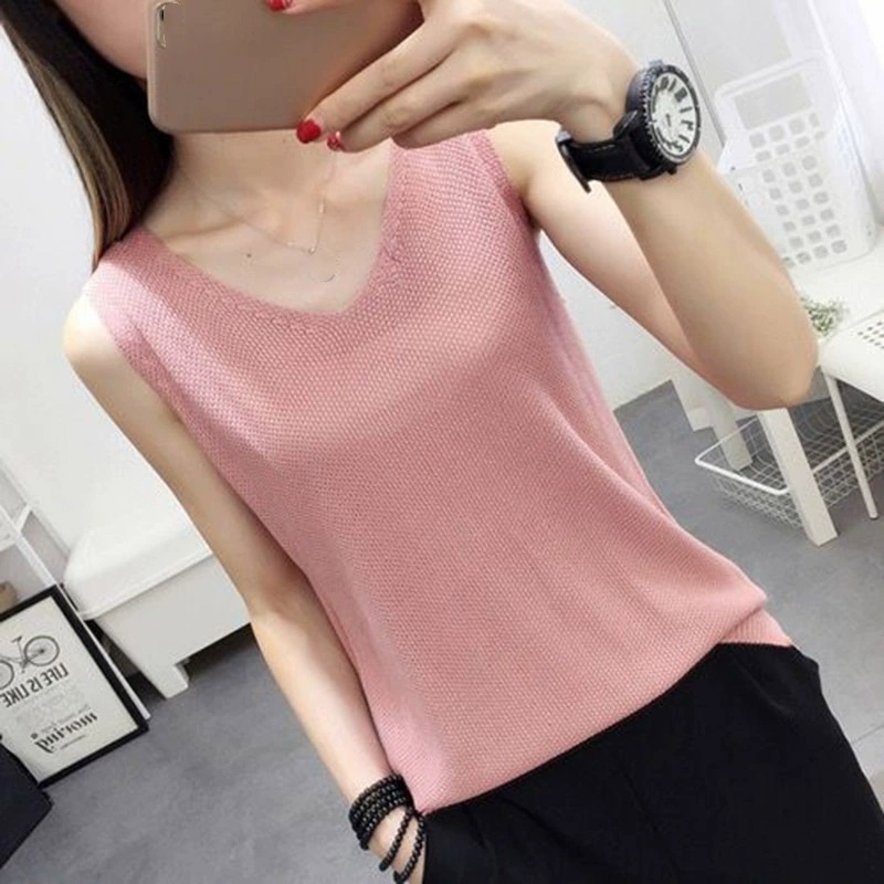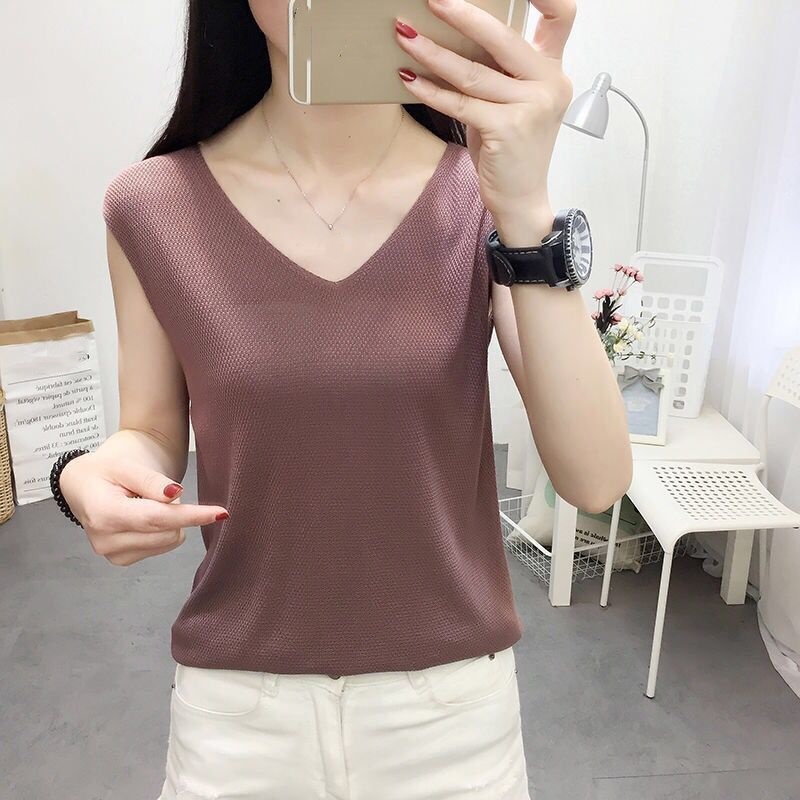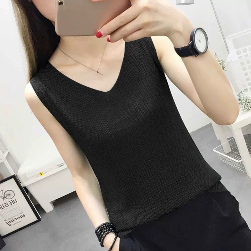 夏日必備 針織V領無袖上衣 透氣親膚 簡約百搭 輕鬆襯出好氣色