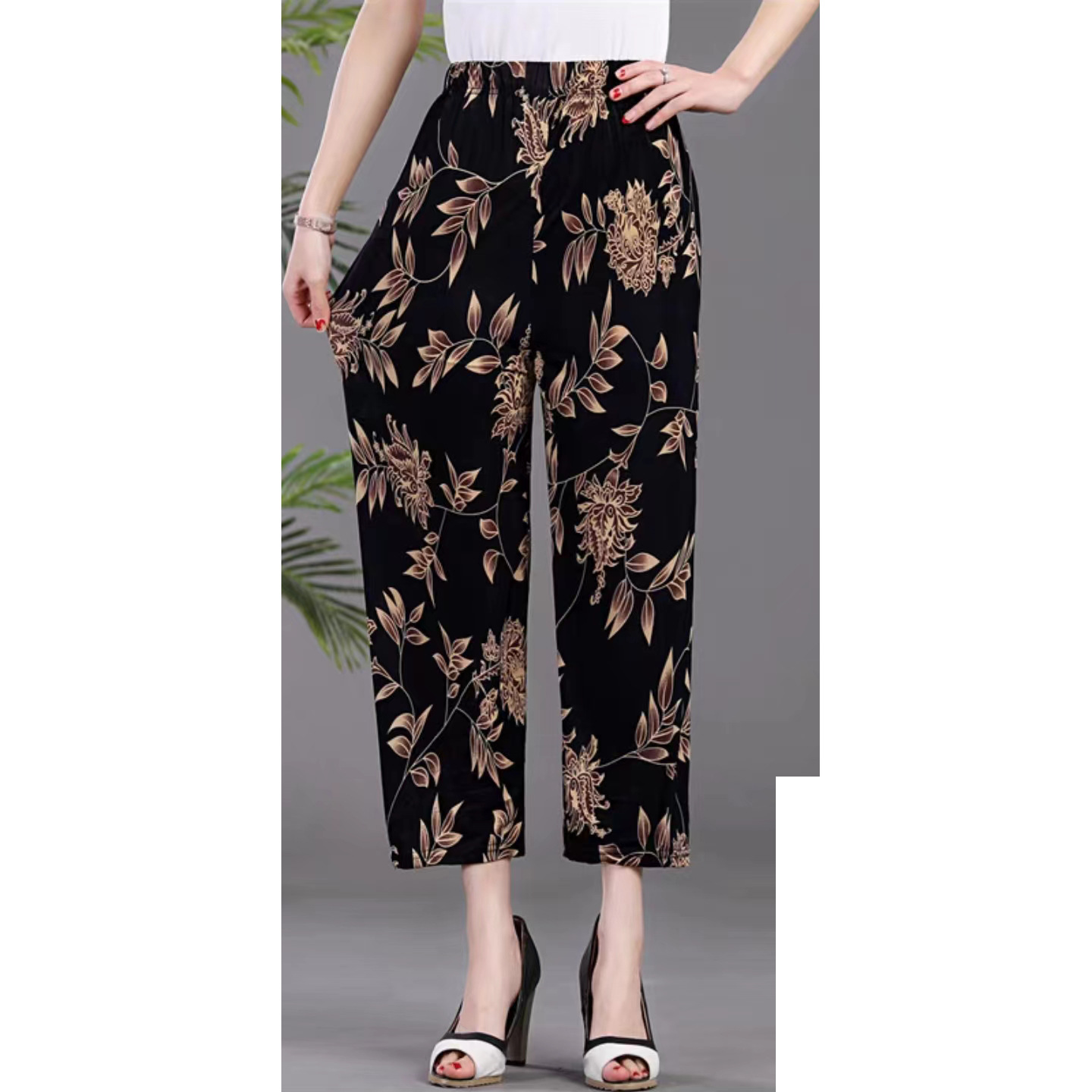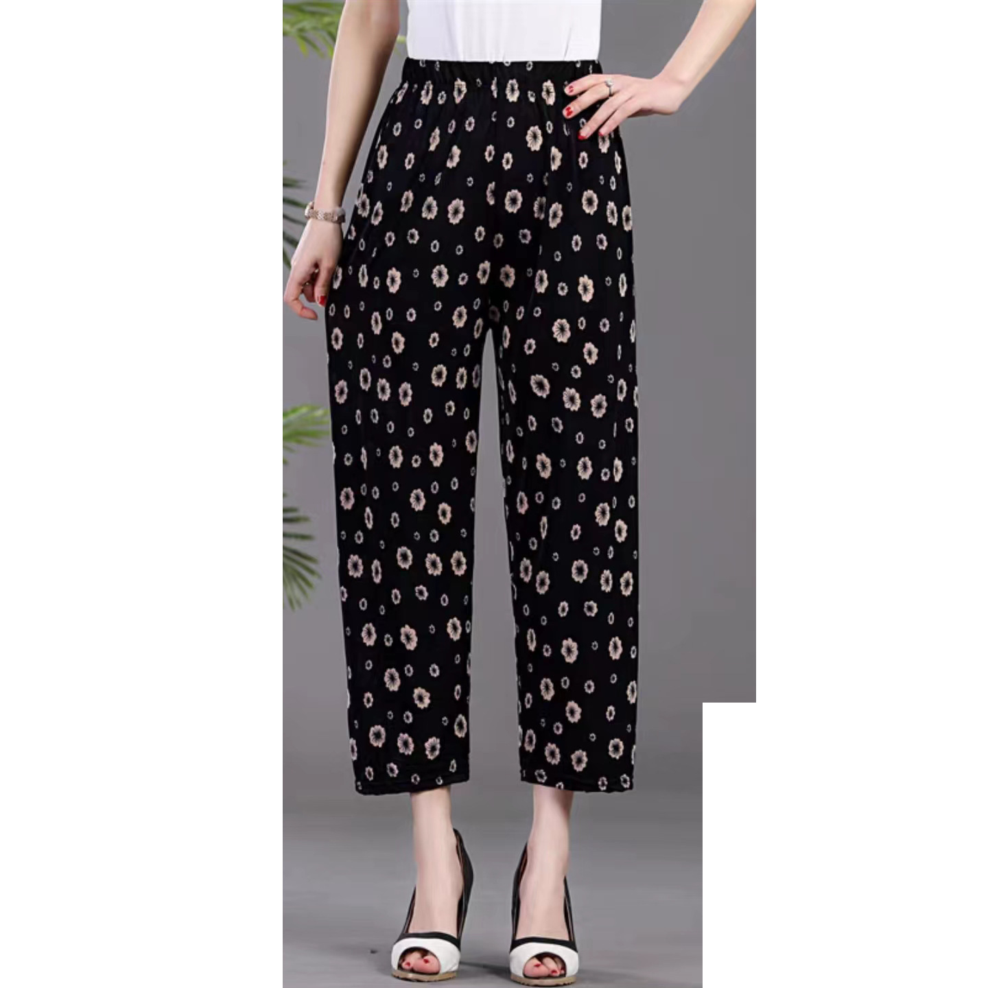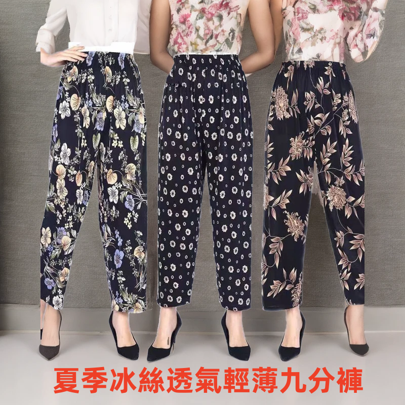 夏季輕薄透氣舒適冰絲九分褲媽媽褲直筒休閒褲90-150斤中老年