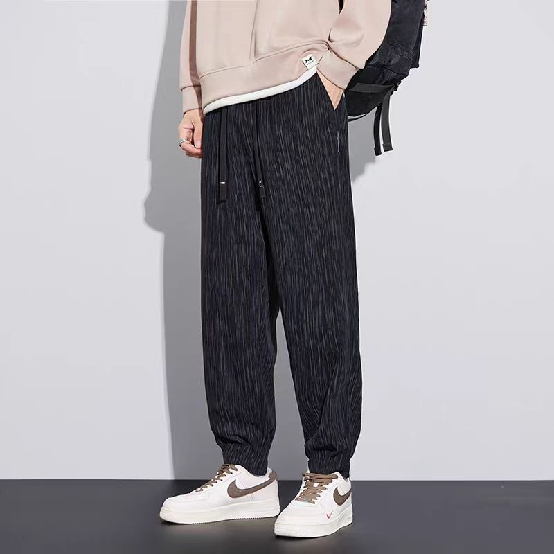 夏季冰絲薄款男士寬鬆哈倫束腳褲休閒 褲潮流時尚百搭垂感舒適男褲