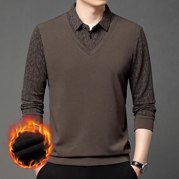 加絨加厚冬季商務休閒翻領假兩件POLO衫 襯衫領+POLO主體一件搞定,省卻層次搭配,3秒出門仍高級。西裝內搭不臃腫。商務休閒兩用:翻領挺括,配西褲正式、配牛仔隨性