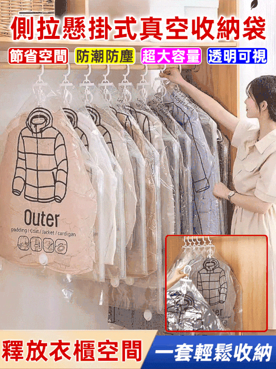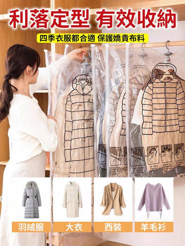 【換季神器】掛式收納袋創新設計 連衣架直接懸掛抽真空 襯衫連衣裙零摺痕保存 換季時取下即穿超級省時